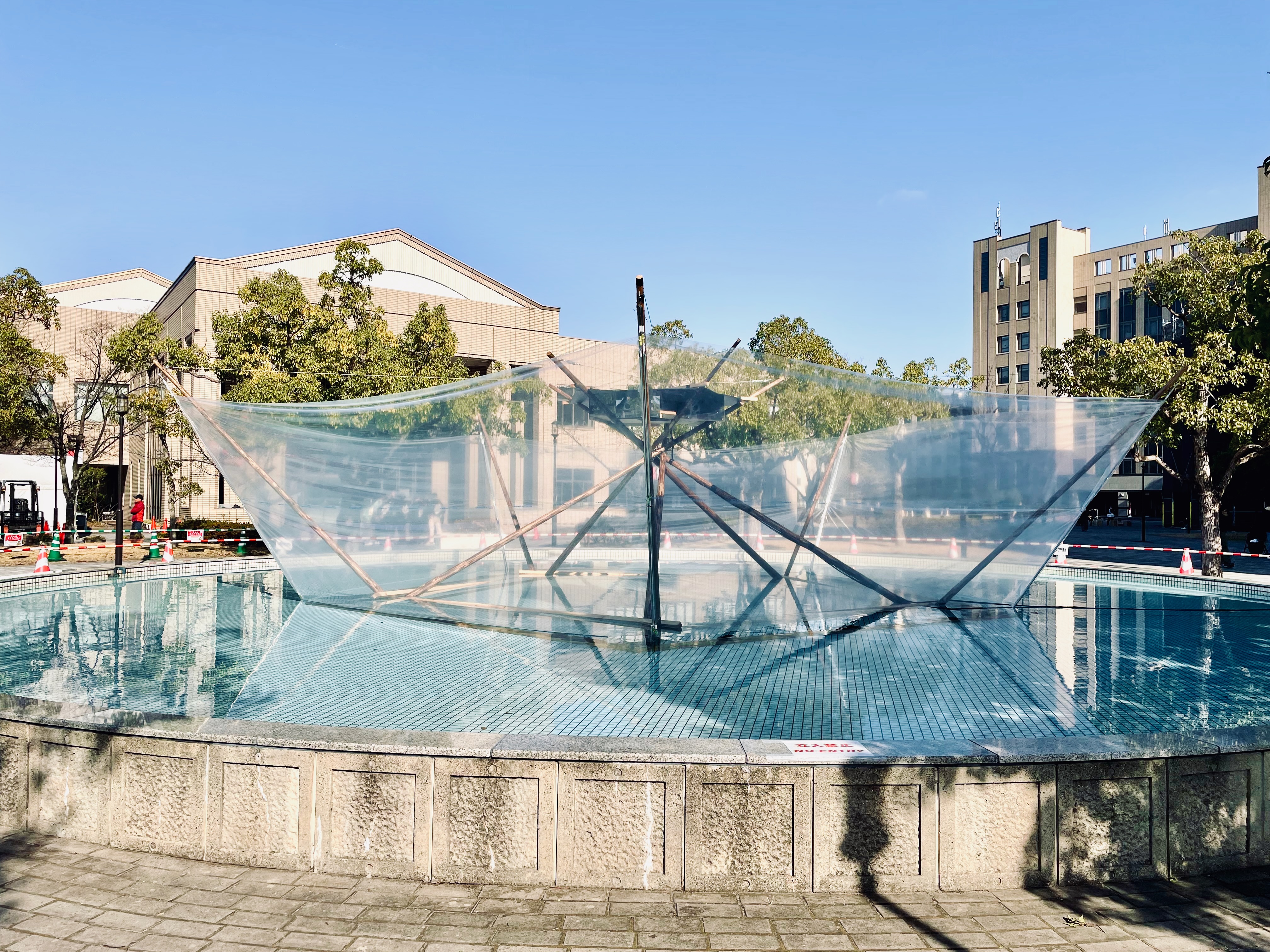 ディテールには、バックル付きの事後調整可能なワイヤーや部材同士を当てるだけの接合部、パッカーを使ったスクリーン取り付けなど、低コストかつ施工性の高いものを採用した。プロジェクターは部分的に重ね打ちすることで立体フレームの影を消し、シームレスな映像投影を可能にした。映像にはWEBアプリケーションを通してスマートフォンからインタラクションでき、噴水を中心として一体感が生まれるインスタレーションとなった。