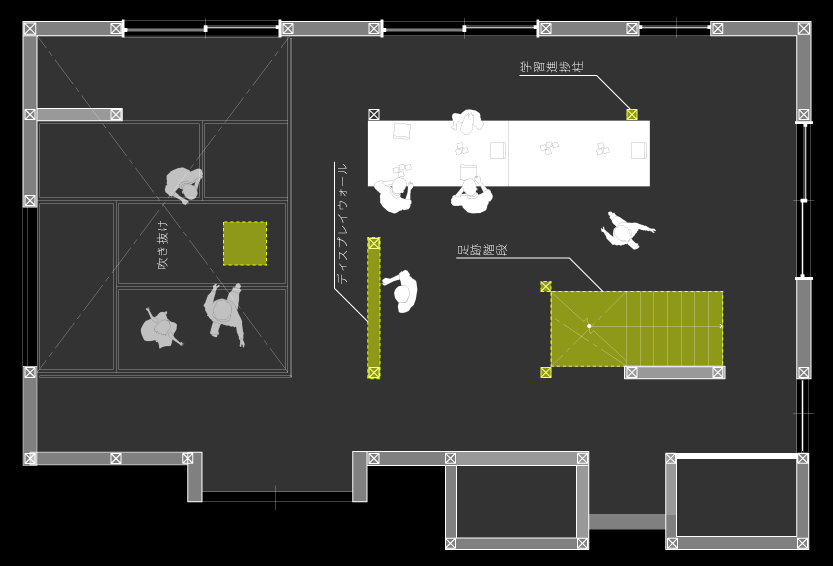 DAKIYA は、使われていない空き家を改修してデジタルコンテンツを導入した、子どもたちの情報教育の場所であり、多様な居場所でもある。DAKIYAでは、訪れた小中学生が退職プログラマーの指導員と対話しながら各々の勉強ややりたいことの学習を進める。DAKIYA は複数できることで小規模な単位で大きなネットワーク形成し、多様な小中学生が自由に選択できる居場所になる。例えば学校にいけない子どもたちが昼間に訪れたり、学校帰りに友達と一緒に訪れて、プログラミングはもちろん、映像制作や3D プリンターなどで遊びながら学ぶ。こうしてDAKIYA が茨木市の子どもたちに身近になることで、空き家の認知度の向上もはかることができる。
